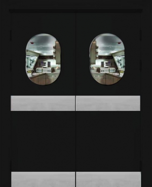 Двойная Гладь 3 ПО с с овальным окном и двумя отбойными пластинами - маятниковая дверь высокого качества с надежными итальянскими петлями: