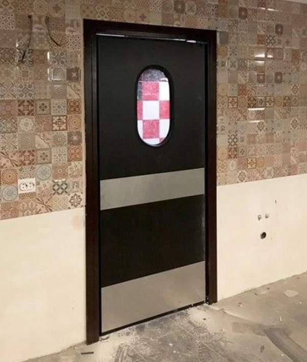 Гладь 3 с овальным окном и 2 отбойными пластинами - маятниковая дверь высокого качества с надежными итальянскими петлями: